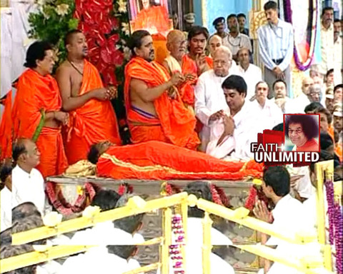 ....Сооружение мемориала и установку золотой статуи Бабы планируется выполнить через несколько дней. Хотя Баба проповедовал вселенское братство и единство всех религий, Его последние ритуалы выполнялись по традиции индуизма...