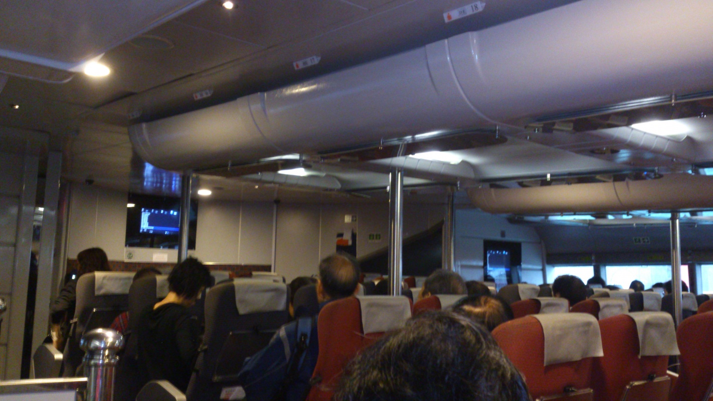 При выходе с парома идетё со всей толпой, уже в терминале увидите стойки для прохождения погранконтроля, но теперь Вам нужно выйти из толпы и направиться направо- Вы увидите небольшую будку, подойдёте к окошку, предъявите билет и скажите, что Вы вылетаете из Макао в течение двух суток, поэтому имеете право, как гр. России/Украины получить бесплатную визу (штамп).