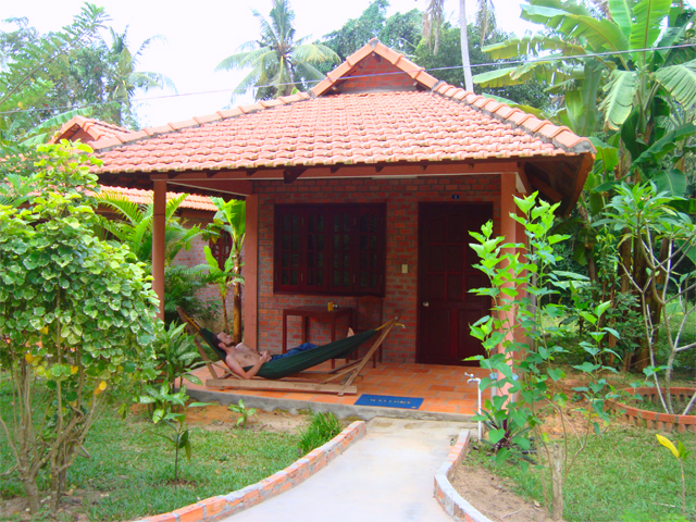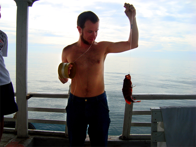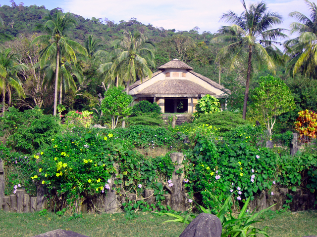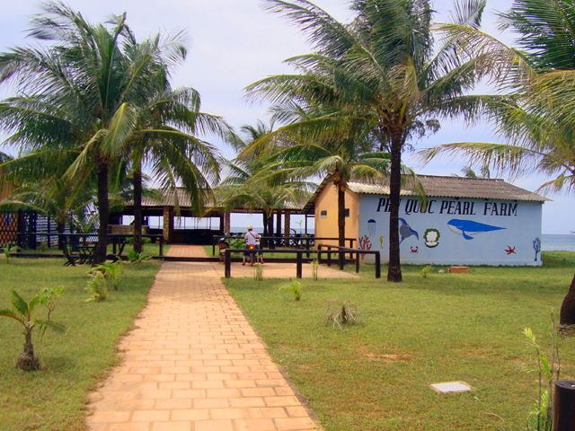 Следующий день на Фу Куоке начинается с пляжа. Волнения никакого, плескаемся и плаваем в свое удовольствие. Берем байк в нашем гесте и едем по южной части острова (стоит упомянуть, что дорога от геста до главной улицы — это совершенно непроходимая полутораметровая колея из глины, кирпичей, булыжников, песка и всего-чего-угодно, каждая поездка через которую — это серьезное испытание на ловкость и терпение.) Дорога вдоль пляжа ужасная — красная пыль и никакого асфальта. Заходим в музей жемчужной фермы. Небольшая комната с раковинами, кораллами и надписями на английском о процессе выращиваниями жемчужин — скудно, но вполне описывает этот в высшей степени трудоемкий процесс. Встречаем пастуха на мотороллере, одиноко стоящие дома и кое-где рыбацкие шхуны; заезжаем в стопроцентно рыбацкий поселок, каждый житель которого провожает нас заинтересованным взглядом.