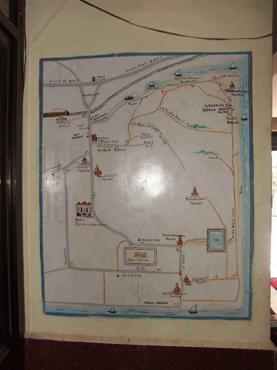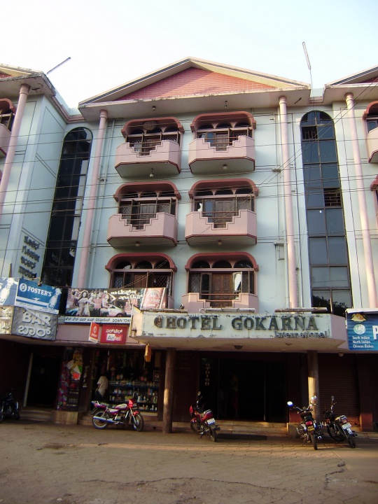 Приехали в Гокарну после обеда и не долго думая заселились в отель Гокарна Интернешинл. Приличный номер с ТВ, душем, красивым постельным бельем 250 руписов в сутки. Внутри отель выглядел готичненько. Массивные деревянные ступени и плесень на стенах. Хотя сами номера чистые. Сосед наших друзей показал маленький «суприз» на потолке на балконе. Огромные осиные ульи. Это было жутенько. Огромные сталактиты, кишащие осами. Брррр... Но как ни странно, они никого не трогали. Жили себе мирно своей осиной жизнью.