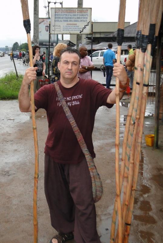 А при вывозе из страны старинных изделий требуется представить сертификат от госуд.музея, что они не представляют собой художественной ценности и не являются народным достоянием. У меня же при себе был только счет (типа товарного чека) от продавца, которого обычно хватает, чтобы успокоить нигерийских служителей закона. Последние, кстати, пользуются любой возможностью срубить с бледнолицых путешественников денег под малейшим предлогом какого-нибудь нарушения. А потому умеют придраться и к столбу, не хуже российских гаишников.