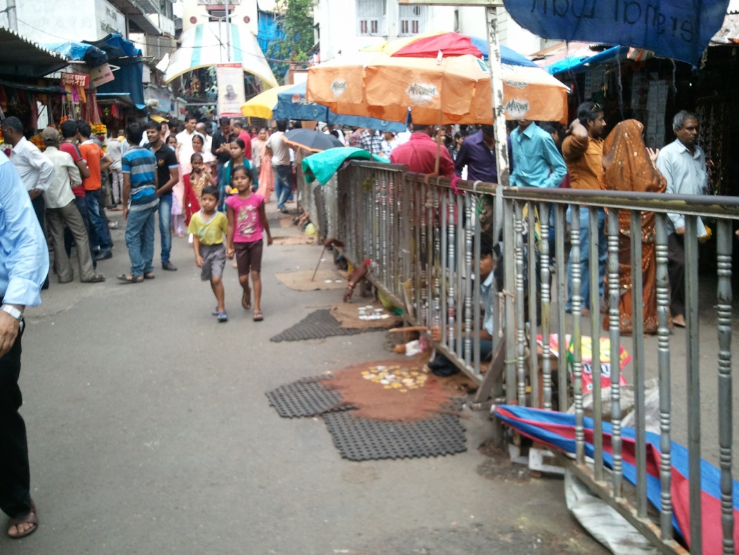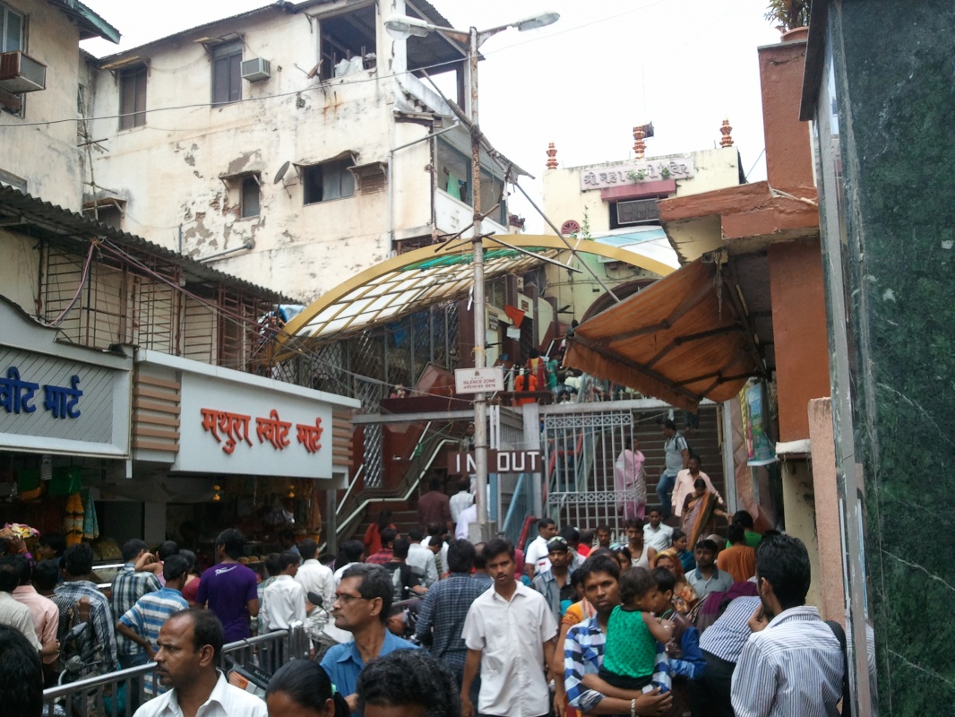 Бомбей. Храм Махалакшми (Mahalaxmi Temple). Кроме МахаЛакшми, в храме можно помолиться МахаКали и МахаСарасвати. В шаговой близости, ещё пять малюсеньких храмов. Например, Ганеше и Хануману. 250-ти летний храм Махалакшми, на берегу Аравийского моря, оброс старым колоритным кварталом так, что видна лишь верхушка. Добираться нужно по нескольким кривым улочкам вместе с толпой небогатых людей, идущих сюда молиться о богатстве. По дороге, сидящие на земле, старушки-просильщицы будут бить вас по лодыжкам чашками для подаяний (