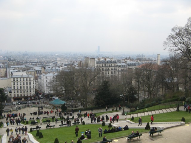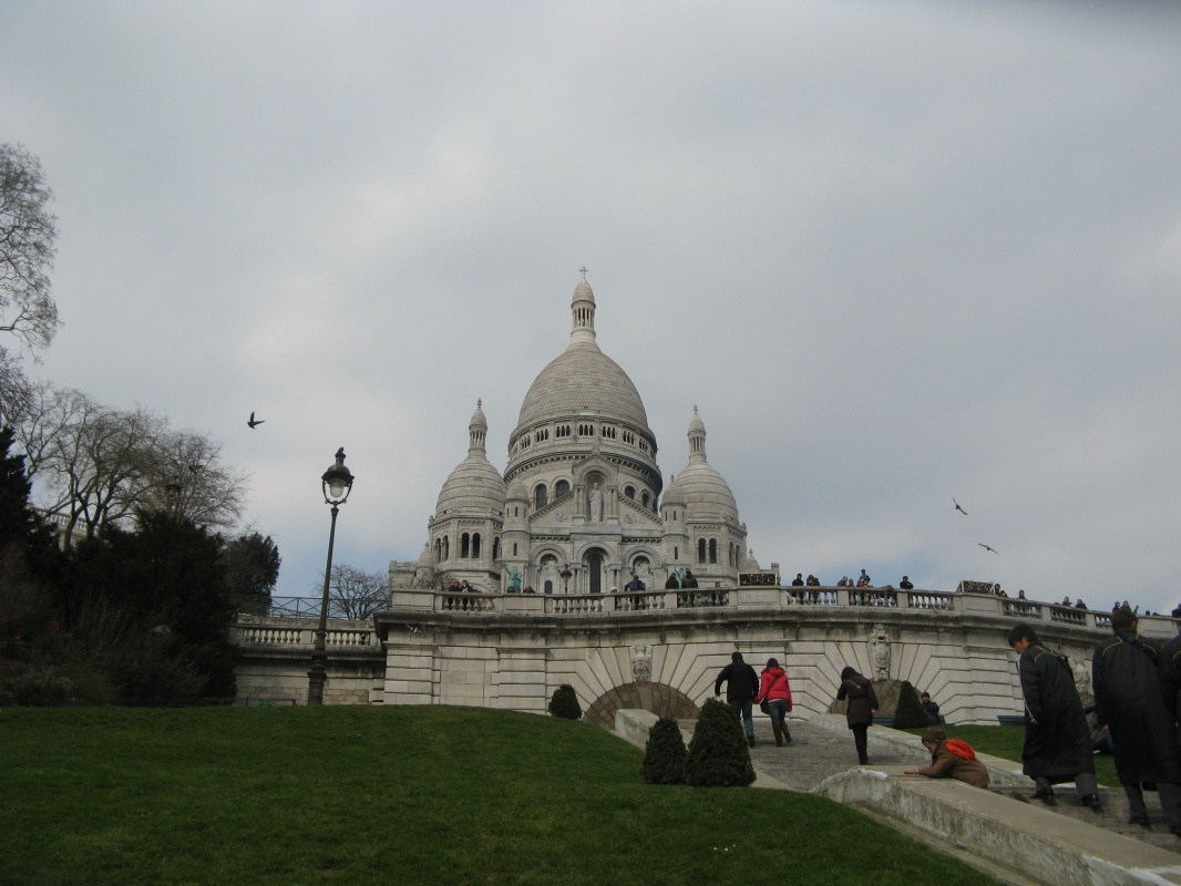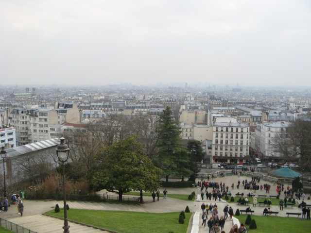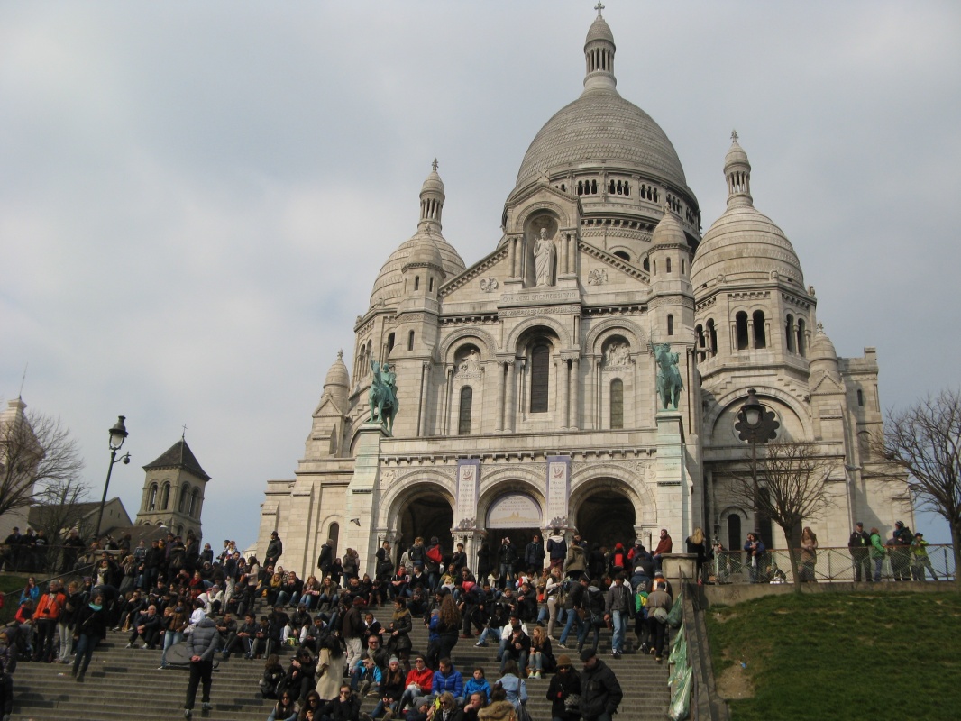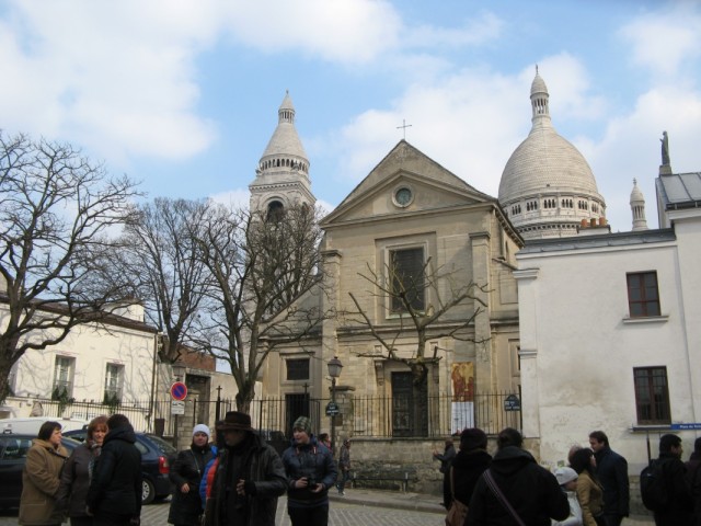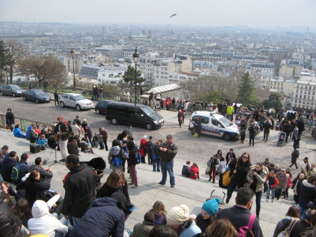 Заворачиваю за угол - и всё понимаю: вот и виды, и Холм, и вообще. Базилика Сакре-Кёр и площадь со ступенями перед ней. Тут же рядом и станция фуникулёра, поднимающегося от подножия холма.