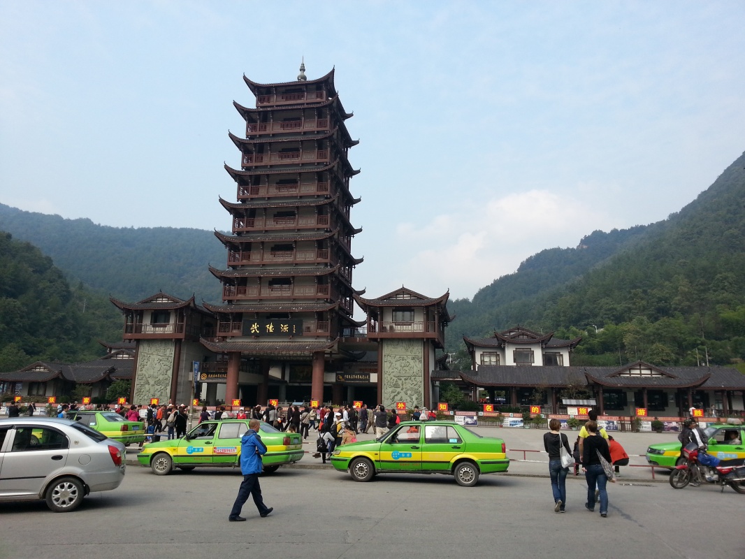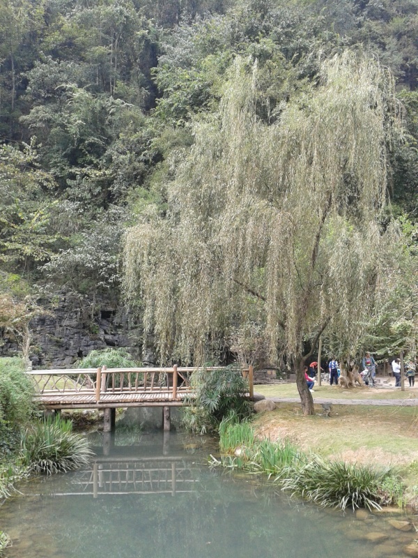 Решили в оставшиеся светлые часы съездить на озеро. Правда, как добраться автобусом до туда, мы так и не выяснили, от остановки первого автобуса у моста шли пешком и в итоге только после 5 часов оказались у входа в парк. Вход сюда тоже платный, Y150. Решили, что смысла идти нет, уже стемнеет, пока мы дойдем до озера. Потом мы видели фотки, где и озеро, и водопад подсвечены, возможно, есть смысл идти туда как раз вечером. В хостел возвращались пешком, и тут Вулинь нас удивил. Мы ожидали, что деревушка совсем небольшая - на три улицы, но сами заблудились так, что дома оказались в 10. Вот тебе и деревня.