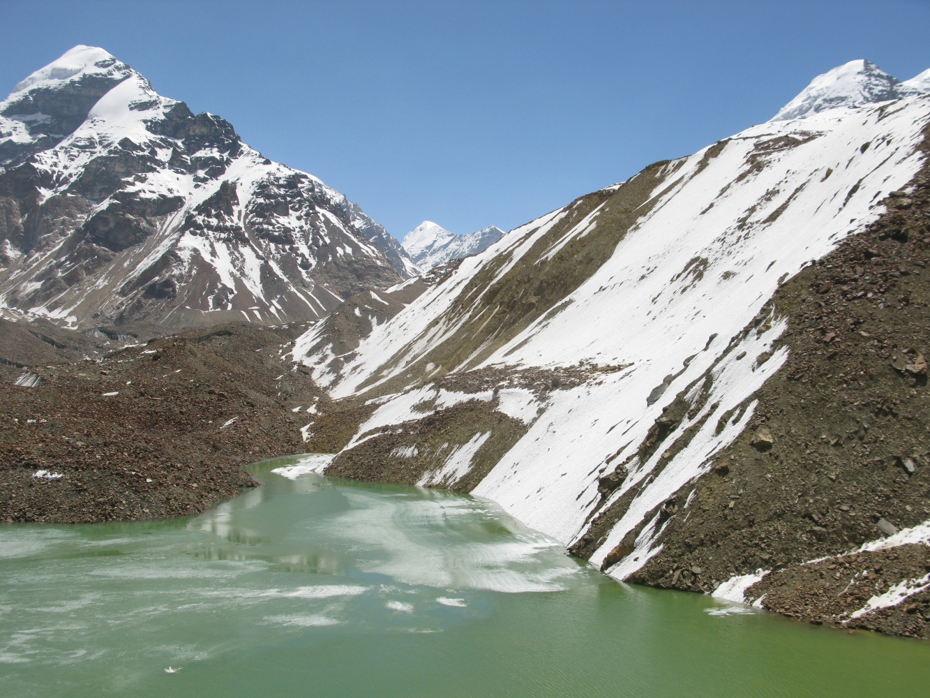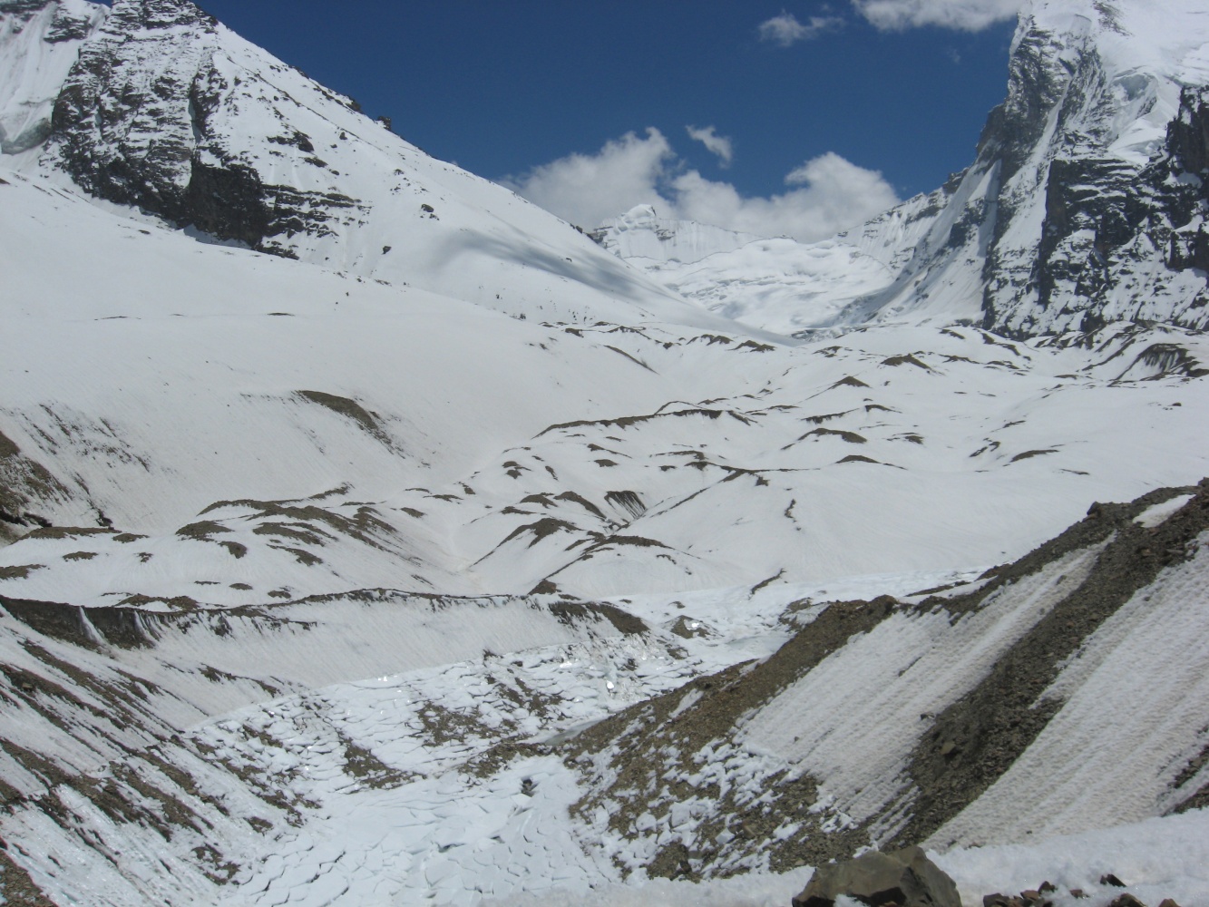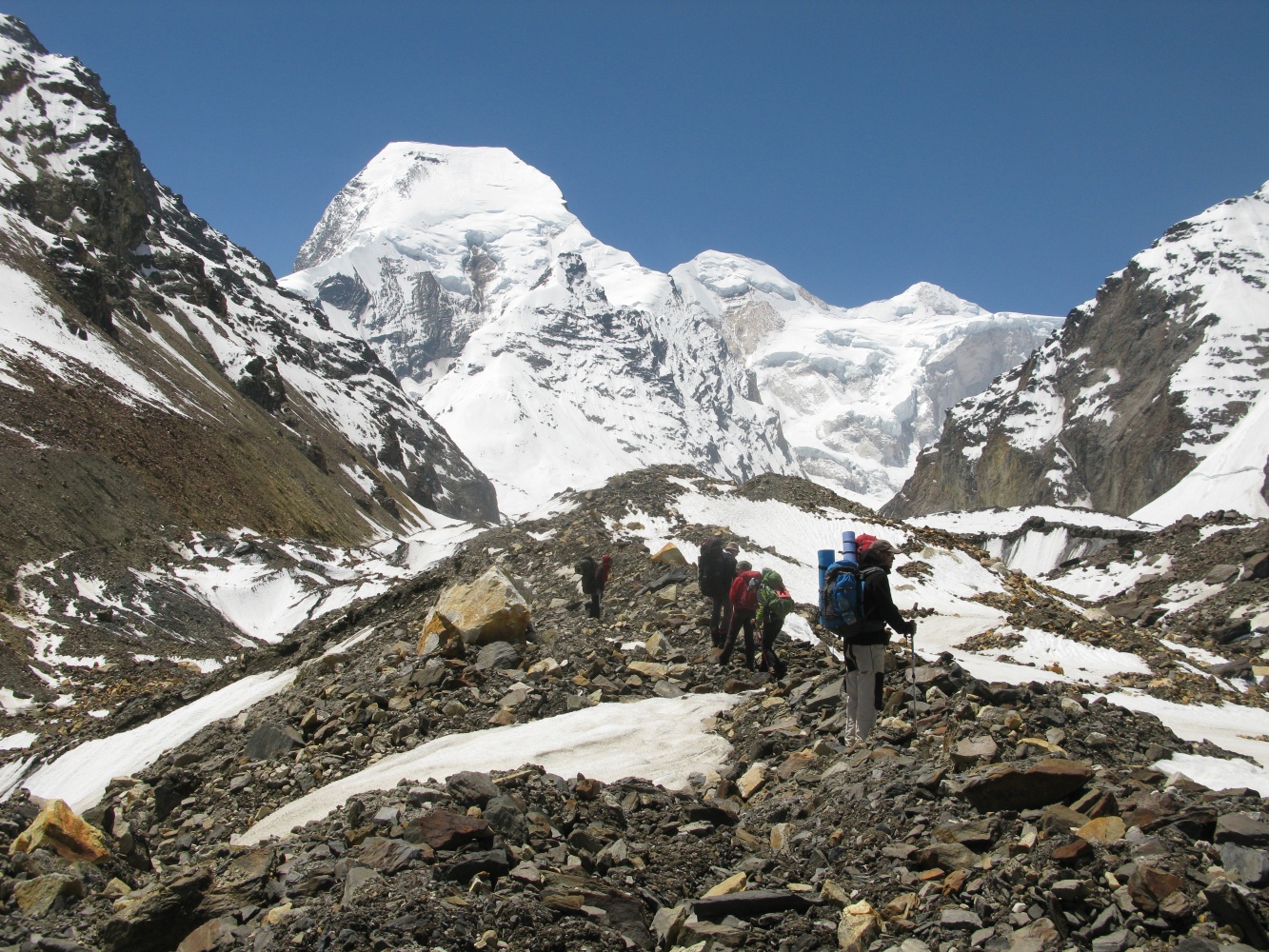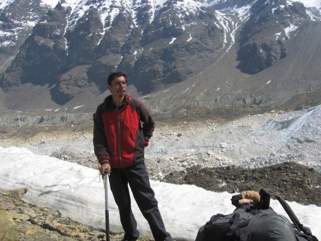 Мы спустились на ледник Ганготри и затем поднялись траверсом через ледники Ганготри и Чатуранга по морене.