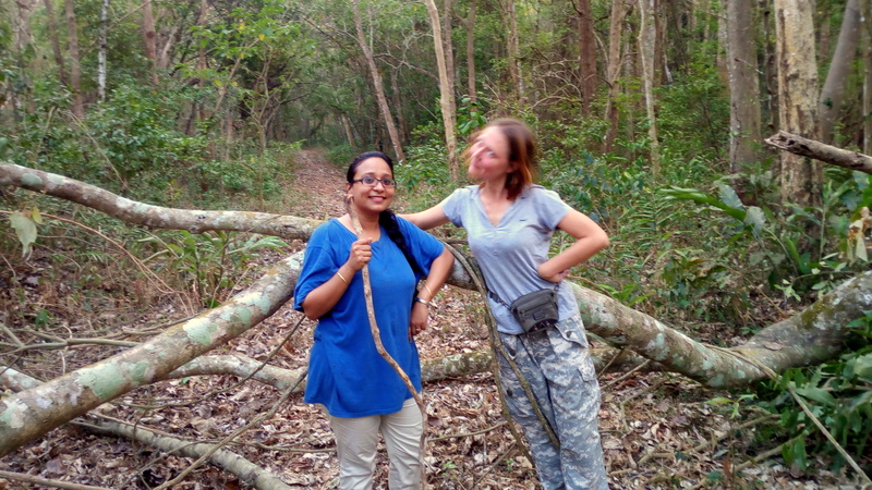 Ходили в джунгли в окрестностях Теккади. Я и друзья из Дели. Вытащила их погулять по тропам. Туда ходить не надо!!!)))), так нам сообщили пограничники штата Тамил Наду (мы к границе вышли). Я не очень поняла, но в Нац. Парке Перияр безопасно, а так то в лесу нет. В лесу тигры)