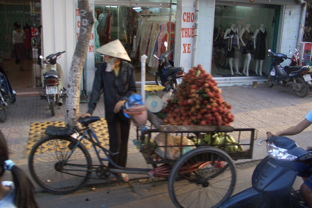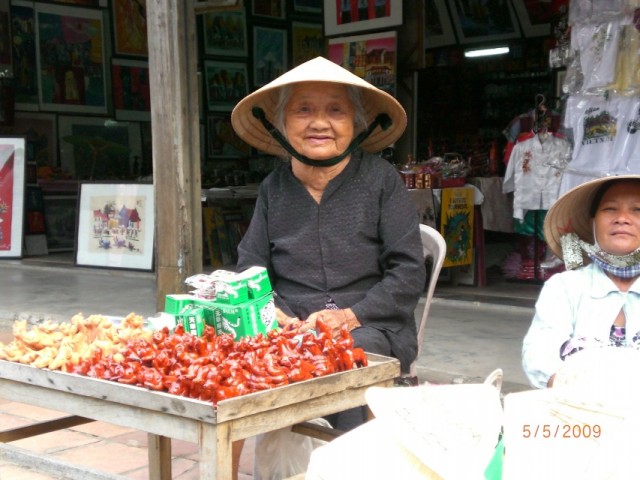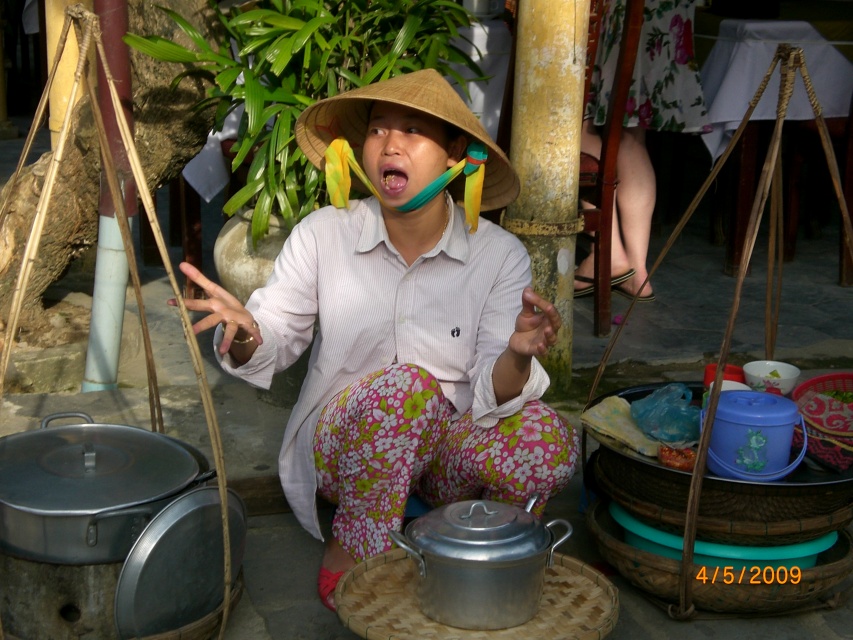 В субботу Лог взял выходной для поездки в деревню к родственникам. Я отправился в колониальный французский Ханой. При очередном переходе улицы меня кто-то выдернул прямо из под колес мотоцикла. Молодая девушка с велосипедом. Я поблагодарил ее. Разговорились. Она работает учительницей английского языка в школе. Никогда не жила и не работала в англоязычной среде. Язык осваивала сама. Затем в гос. университете. С носителями языка практически не общалась. В общем мы просто гуляли по городу и разговаривали. Предложил ей составить мне компанию пообедать. И как обычно выбор места за приглашенным. Он выбрала уличную едальню, это мобильное кафе. Все свое ношу с собой и угли и огонь, тут жарю и парю, мою и полоскаю. Сам бы я никогда бы не отважился есть в таких местах. В то же время, как говорил Ганнибал Лектер-нет ничего лучше, чем пробовать новое. Не помню, что ели и вкус пищи. Наверное было не очень. Зато, как интересно. Не замечая времени дошли до ее дома, вернее антикварно-сувенирной лавки где работают ее братья и другие родственники. Она должна была выполнить какую-то работу, а мне предложили маленький и низкий стульчик в тени у витрины магазина, великолепный зеленый чай и вид на торговую улицу и ее посетителей. Никто не лез с вопросами и разговорами, не пытался что либо продать. Мне просто предоставили возможность взглянуть на жизнь из-за их прилавка. Я потом еще пару раз приходил выпить чаю и посидеть в этом волшебном месте.