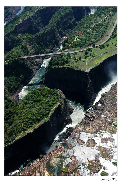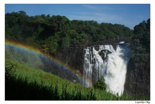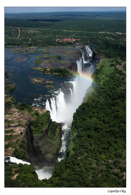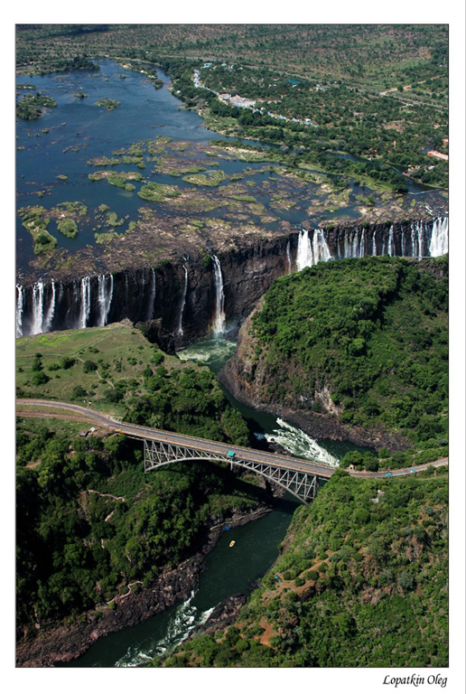 Оплатив по 150 долларов за человека мы оказались на маленькой взлетной площадке, расположенной в саванне в нескольких километрах от городишки Виктория, в очереди мы были не первые и несколько довольно таки упитанных американцев уже попивали свои коктейли в ожидании приглашения к полету… Конечно основной моей задачей как увлеченного фотографа было занять хорошее для съемки место в вертолете – место в кабине пилота. У американцев судя по их дорогим камерам намерения были аналогичны. Оценив свои шансы, я понял что необходимо пойти старой проторенной дорогой и дать кому ни будь взятку, оглядевшись я увидел не молодого негра, который следил за состоянием вертолетной площадки и по совместительству организовывал высадку\посадку пассажиров.. Не долго думая я тихонько отвел негра в сторону и озвучил ему свою проблему… негр понял меня с полуслова тем самым разрушив миф о том что Москва самое коррумпированное место на земле и в знак доброй воли попросил пожертвовать на многодетную семью всего 10 американских долларов… И вот наступил момент посадки в вертолет, как я и ожидал упитанные американцы ринулись к кабине вертолета, толкая друг друга, но тут на их пути появился мой старый знакомый негр и громко заявил, что в кабину по технике безопасности позволено садиться лишь худым людям и не долго думая показал на меня пальце со словами «комплекции как этот парень», надо было видеть вытянувшиеся лица американцев.. меня же второй раз приглашать не надо было и с гордым видом я проследовал на посадку… Конечно же фотографии вида на водопад, что я отснял стоили 10 заплаченных долларов а комедия с упитанными американцами вообще была бесценным приложением….