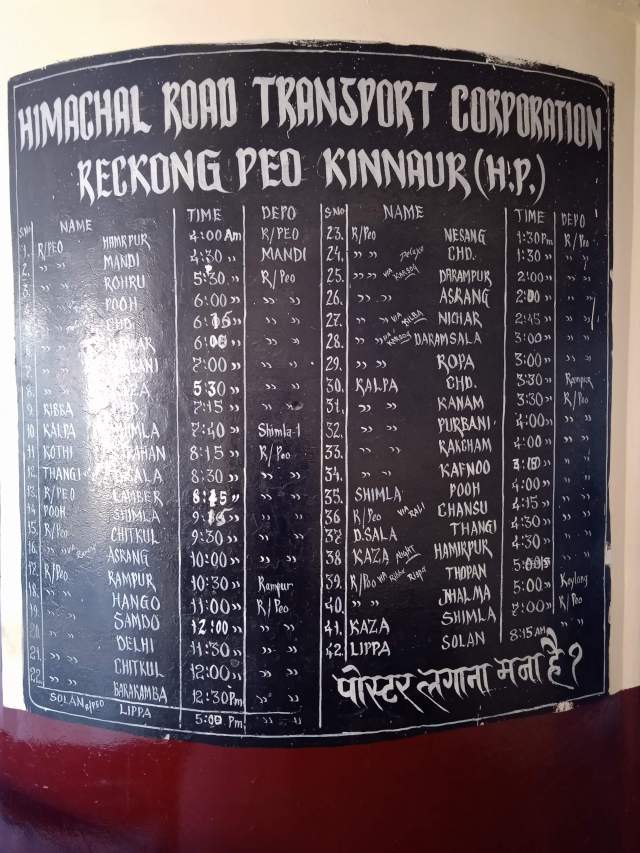 Официально, дорога открыта круглый год, но в реальности она частенько бывает закрыта на ремонт из-за обвалов. Периодически, дорогу смывает водами Сутледжа или дождями, и пассажирам автобусов приходится проходить несколько километров пешком, чтобы пересесть на другой автобус на другой стороне обвала. Также, дорога бывает закрыта из-за снегопадов и других природных катаклизмов. Планируя путешествие по этой трассе, закладывайте как минимум день про запас. Узнавайте о состоянии дороги заранее.