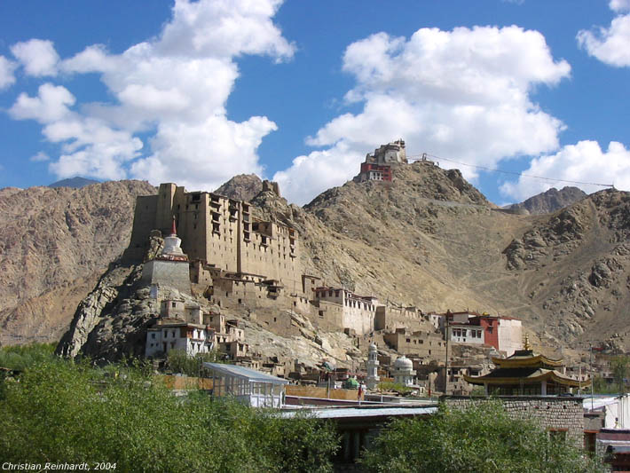 Столица Ладакха, расположенная на высоте около 3500 м в 434 км от Шринагара в верховьях реки Инд (Синдху) - одной из семи священных рек Индии. Омовение в Инде, по преданию, освобождает от всех грехов, естественно наши участники не смотря на прохладную ледниковую воду не замедлили воспользоваться подобным шансом. Население Леха составляет около 30 тысяч человек. Город очень живописный, для туристов построено несколько удобных и комфортабельных гостиниц. К основным достопримечательностям можно отнести девятиэтажный Дворец правителя Леха построенный в начале 17 века. Стены украшены старинными фресками, посвященными жизни Будды, к сожалению, он до сих пор не реставрировался. На горе находятся монастыри Намгьял Тсемо (или Leh Gompa) и Тсемо (Red Gompа), построеные в 15 веке, в которых хранятся статуи Будды и древние манускрипты.