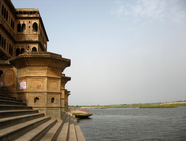 Отстояли очередь в ж/д-кассу на станции Нью-Дели за билетом до Матхуры в дженерал класс (50 рупий с копейками). Поезд не заставил себя долго ждать. Залезли, конечно, не в дженерал, а в тамбур слиппер-класса, как любят ездить многие садху. Там и провели два с половиной часа. Предусмотрительно обзавелись газетой, чтоб было что подстелить на пол, но в нашем тамбуре “ехал” чей-то свернутый матрац, так что добрались с комфортом.