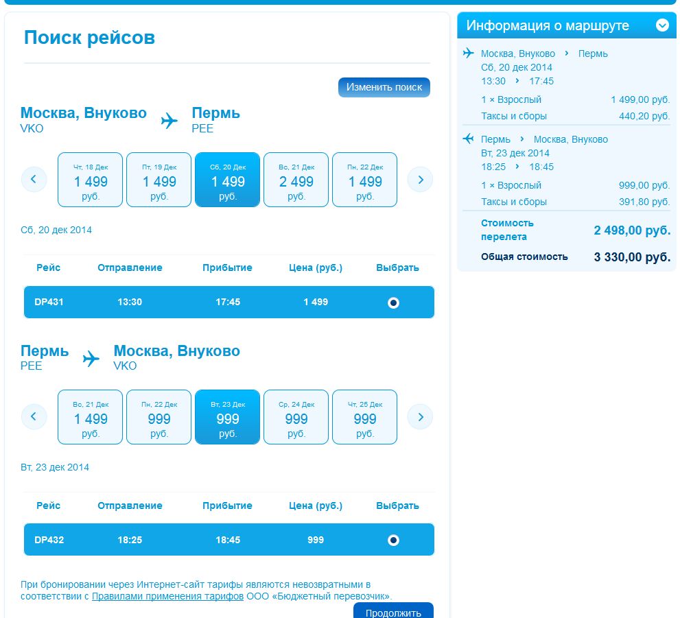 Ради интереса посмотрел рейсы в Пермь и Сочи. Всё там можно посмотреть и выбрать.