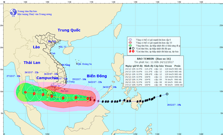 Уже в ночь с 26 на 27 декабря тайфун обрушиться на Вьетнам. На юге страны уже начали эвакуации.