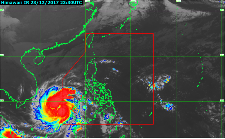 К утру воскресенья 24.12 эпицентр тайфуна зафиксирован в 290 км к Югу от острова Пагаса. Максимальная сила ветра в утренние часы достигала 120 км/ч в центре тайфуна, местами усиливаясь до 145 км/ч. Прогнозируется дальнейшие продвижение на запад со скорость порядка 25 км/ч. Жителя ближайших районов рекомендовано продолжать следить за погодными изменениями и предпринимать меры по обеспечению безопасности от ветра и селевых потоков.