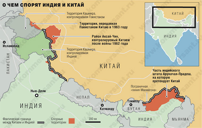 Издание напомнило, что две входящие в БРИКС страны воевали друг с другом осенью 1962 года, и так и не сумели урегулировать давний территориальный спор. После той войны, закончившейся поражением Индии, под контроль Пекина перешел северо-восточный район Кашмира Аксай-Чин. Еще одной спорной территорией между Пекином и Дели остается индийский штат Аруначал-Прадеш, значительную часть которого Китай считает своим.