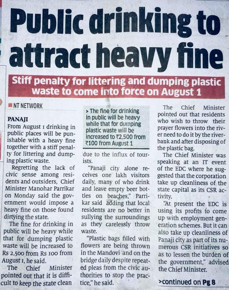 Индия › В Гоа увеличат штрафы за пластиковый мусор и распитие спиртного |