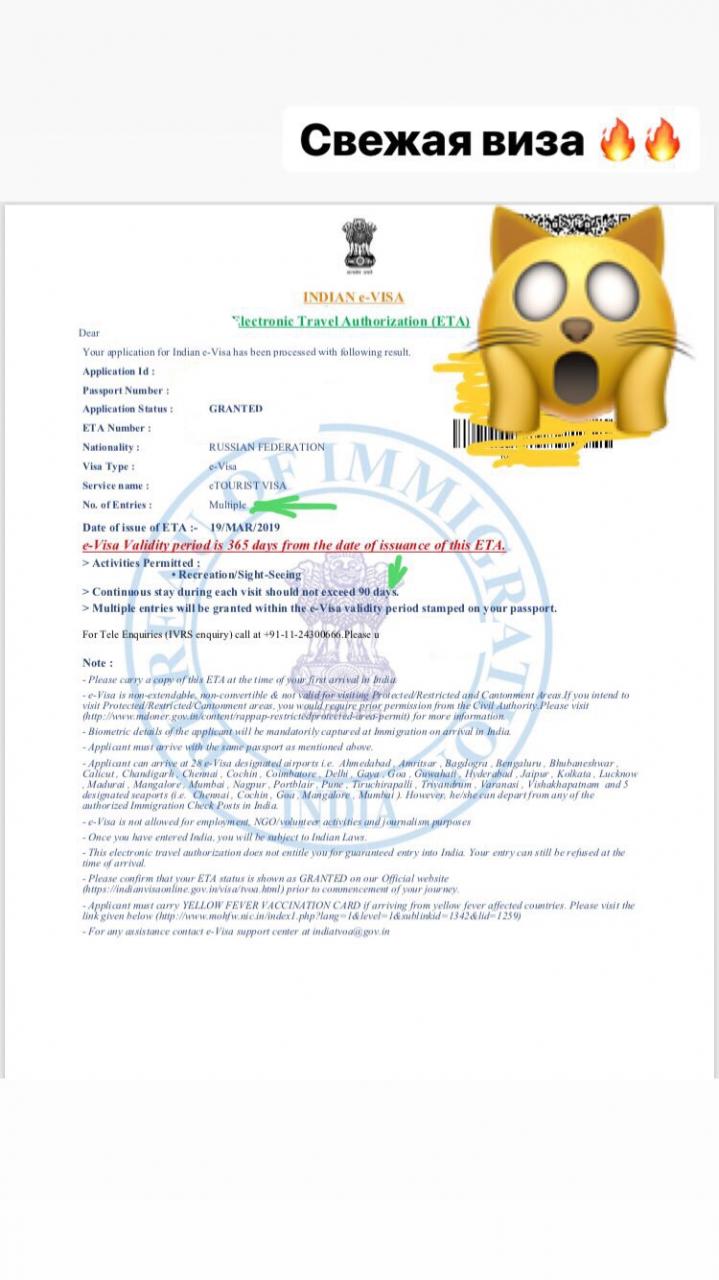 ️️️СВЕРШИЛОСЬ! Годовая туристическая электронная виза в Индию стала реальностью. Виза действует 365 дней с момента выдачи прдтверждения (а не въезда как раньше), она многоразовая (мульти), но каждое пребывание в стране по ней не должно превышать 90 дней. Стоимость не изменилась (100$ для россиян и украинцев).