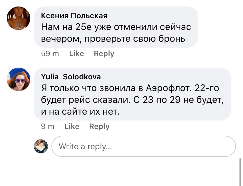 Аэрофлот летает, все рейсы с 22-го состоятся.