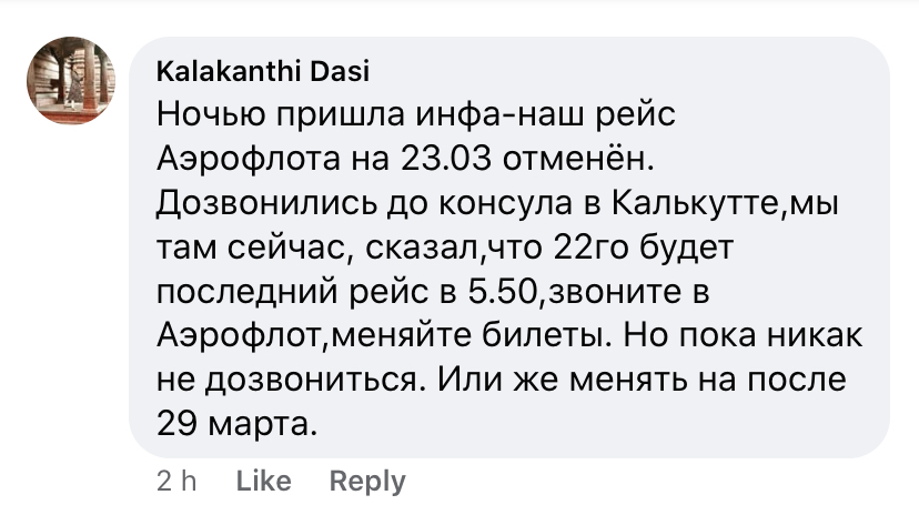 Аэрофлот убрал из расписания все рейсы Дели-Москва с 23 по 29 марта включительно.