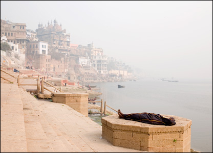 Варанаси - город храмов, город огней, город учения. Здесь развивалась классическая индийская музыка и существует очень сильная традиция йоги, сюда во все времена стекались сотни ученых, музыкантов, философов и поэтов. Многие паломники ночуют так же, как этот пилигрим, прямо под открытым небом.