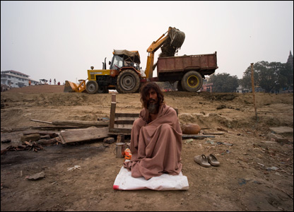 Удивительным образом, здесь уживаются все и вся. Этому йогу необходим минимум личного пространства для того, чтобы медитировать рядом со стройкой. На фоне заходящего солнца (и экскаватора), сидя лицом к воде, в метре от великого Ганга, он кажется средоточием покоя и внутренней концентрации.