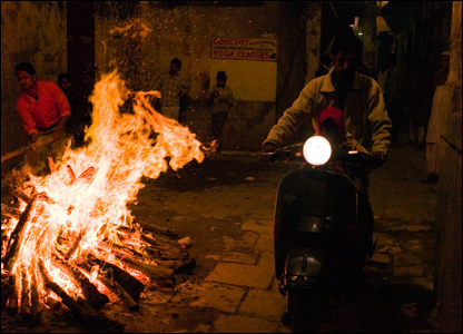 Ночью на улицах священного города жгли костры в честь мусульманского праздника. Раздавали еду бедным и детям. Мусульманским Варанаси был в течение почти семисот лет, с XI по XVIII век. Многие храмы тогда разрушались, а на их месте и из тех же камней строились мечети.
