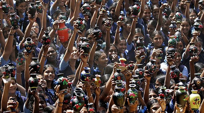 Около 1500 студентов частных школ в Ченнаи попытались установить рекорд по росписи керамики