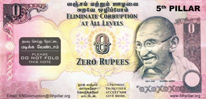 Особые банкноты в ноль рупий были выпущены в Индии анти-коррупционной организацией в рамках борьбы со взяточничеством, сообщает Telegraph.