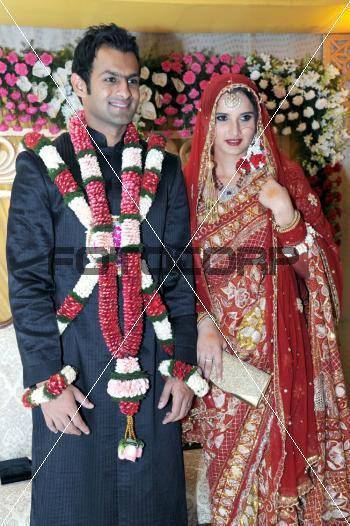 На свадьбе Сания Мирза был в красном сари, в котором ее мать выходила замуж 25 лет назад. 23-летняя Сания Мирза и 28-летний Шоаиб Малик подписали брачный договор, «Nikkah», необходимый по исламским традициям для бракосочетания. Для жениха - это второй брак, первая жена его также была индианкой. Желтая пресса утверждает что, женившись по воле родителей в 20-летнем возрасте, Малик тогда невесту даже не видел до свадьбы.