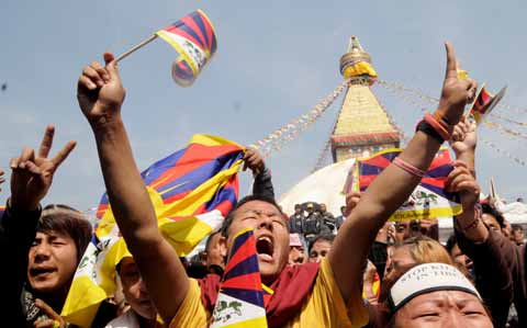 Ранее, после вынужденной встречи с главой администрации Катманду, он обратился с призывом к находящимся в Непале тибетским беженцам не затрагивать чувствительных моментов в отношениях с приютившей их страной. В шествиях под национальным флагом Тибета возле ступы Боднатх участвовали около 300 живущих в изгнании монахов и рядовых тибетцев. Демонстранты скандировали здравицы Далай-ламе и призывы "ООН, проснись" и "Свобода Тибета – это безопасность Непала".