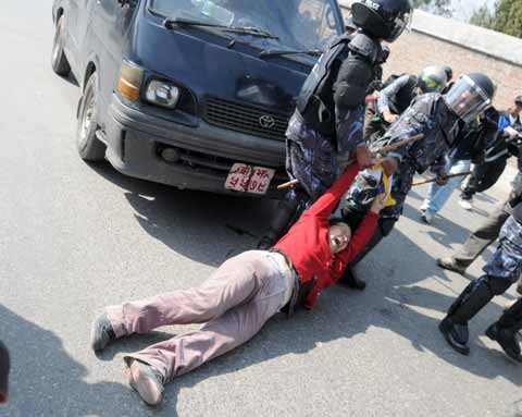 Тибетцы проводили шествия протеста на территории храмового центра Боднатх в течение всего дня, но выход через главные ворота на окрестные улицы преграждал отряд полиции. Чтобы разогнать демонстрантов, полицейские применяли дубинки.